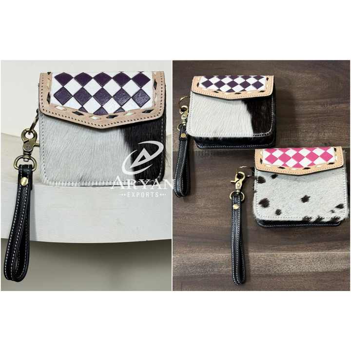 Genuine Cowhide Checkered Leather Coin Purse