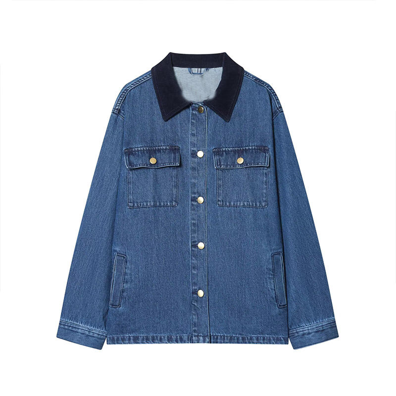 Nueva Colección 2026: Chaqueta Holgada con Cuello en Bloques de Color a la Moda, Top Retro de Manga Larga para Mujer