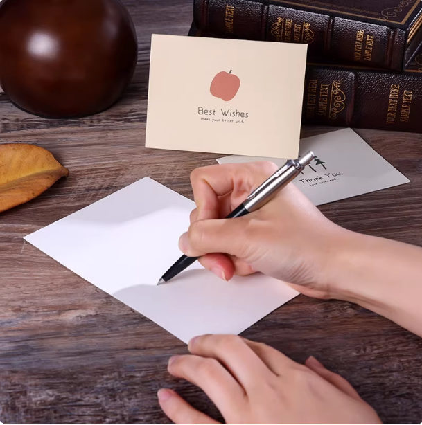 Tarjeta de Felicitación de Cartón Barnizado Blanco de Estilo Vintage Simple con Diseño Creativo 2026 para el Día de San Valentín y el Día de Acción de Gracias