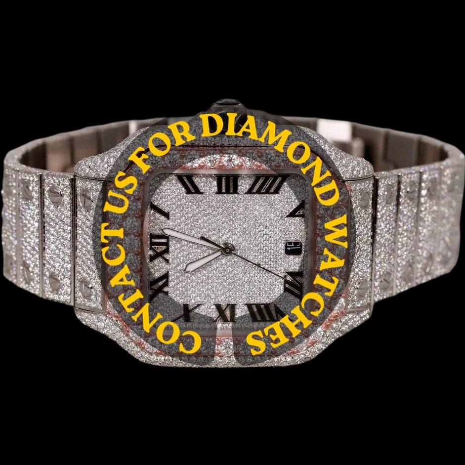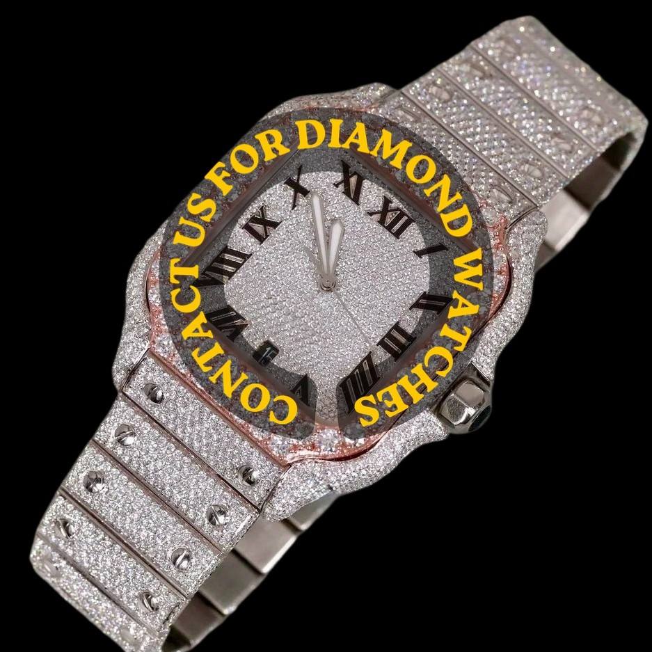 Reloj de Pulsera Cuadrado de Diseño Personalizado 2026 con Esfera de Números Romanos y Diamantes Moissanite, Colección de Dos Tonos para Hombre