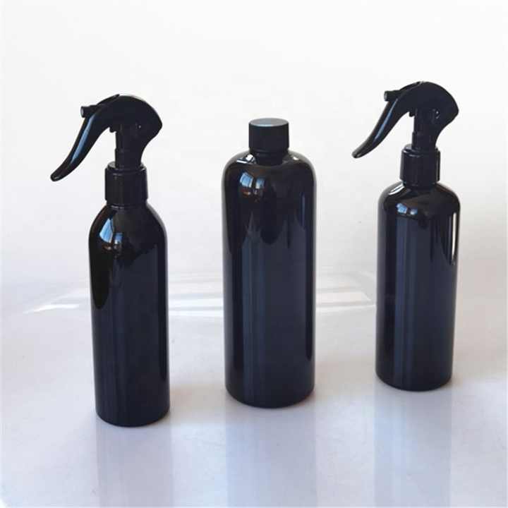 Botella de plástico con pulverizador de gatillo para perfume, transparente, ámbar, blanca, negra