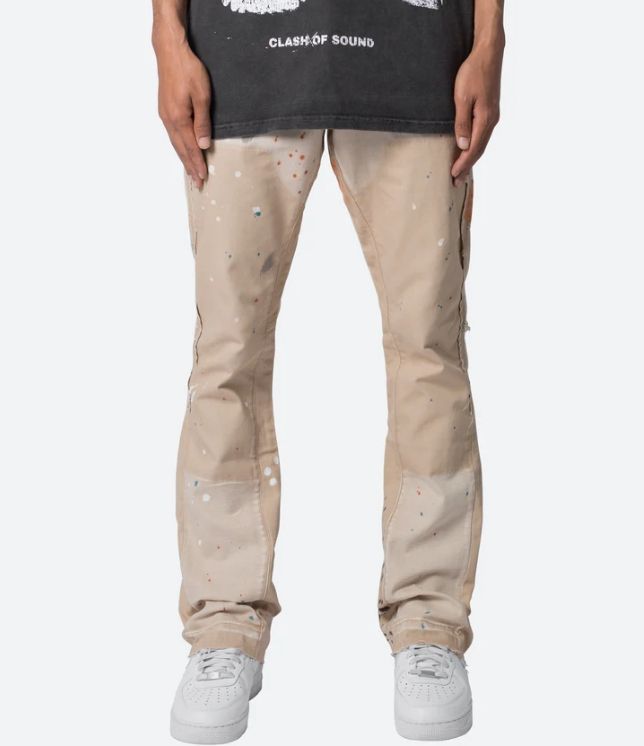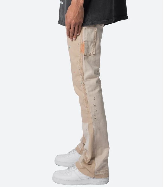 Jeans de Mezclilla para Hombre, Diseño Nuevo 2026, Estilo Vintage con Salpicaduras de Pintura, Lavado Crema, Paneles con Parches, Corte Ajustado y Acampanado