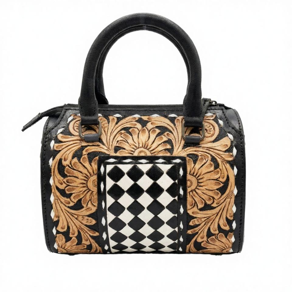 Nueva Colección 2026, Diseño Exclusivo, Cuero Genuino con Grabado Floral a Mano, Patrón a Cuadros, Cierre de Cremallera, Estilo Casual y Deportivo de Lujo