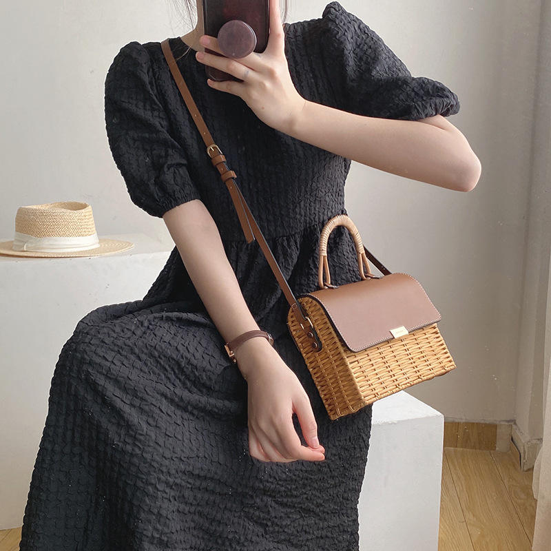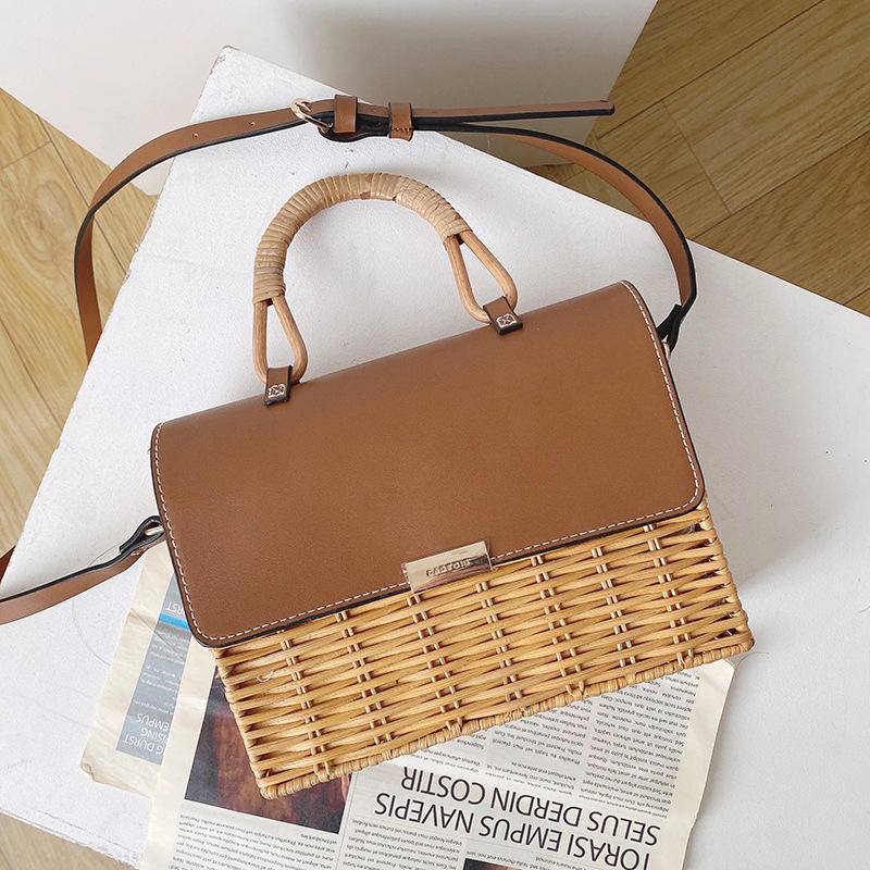 Bolso de Ratán Hecho a Mano con Solapa, Estilo Coreano, Estilo INS, Bolso Bandolera de Paja, Diseño Exclusivo, Bolso Tejido para Mujer, Nueva Moda 2026