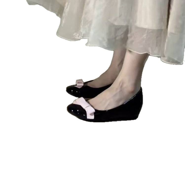 Nuevas Bailarinas Francesas 2026 con Bloques de Color y Lazo para Mujer, Zapatos Planos de Punta Baja con Tacón Oculto