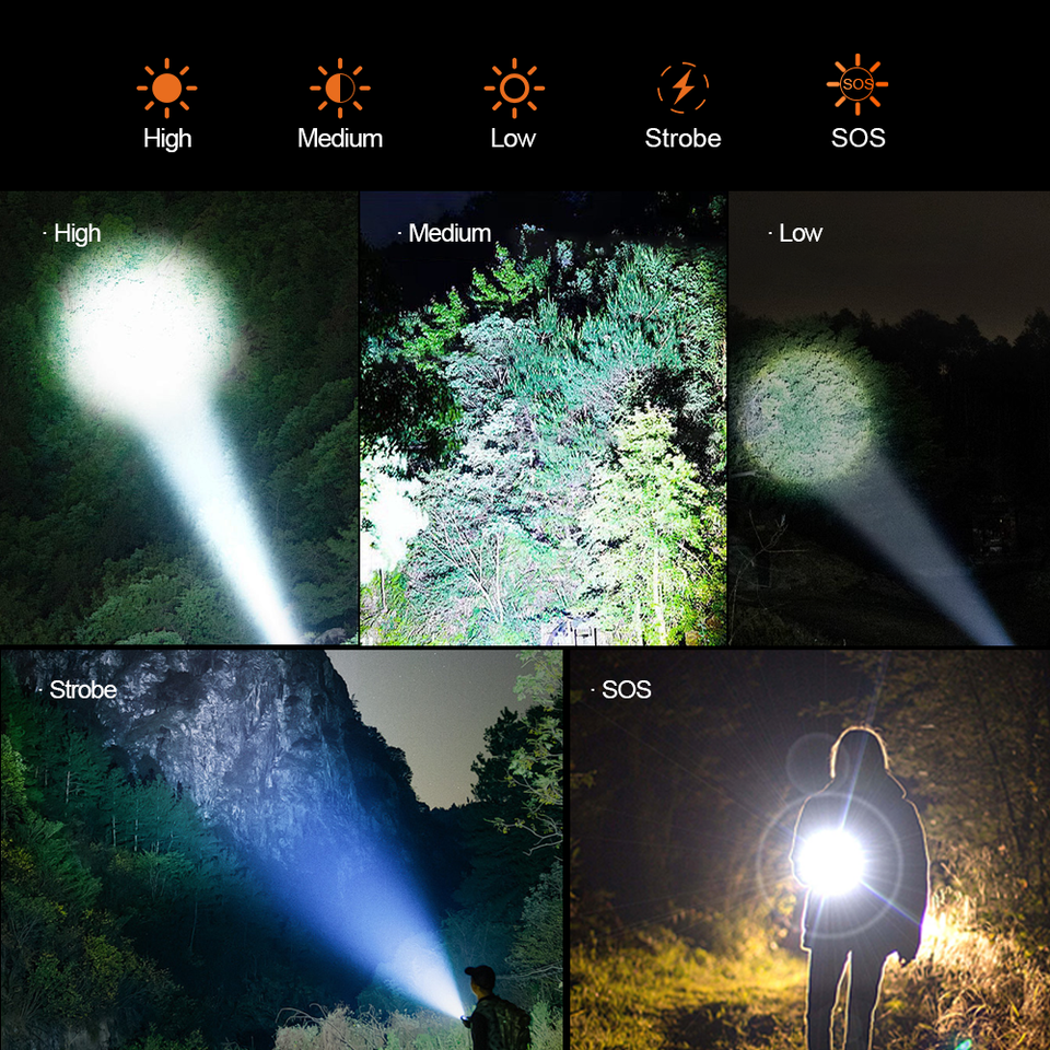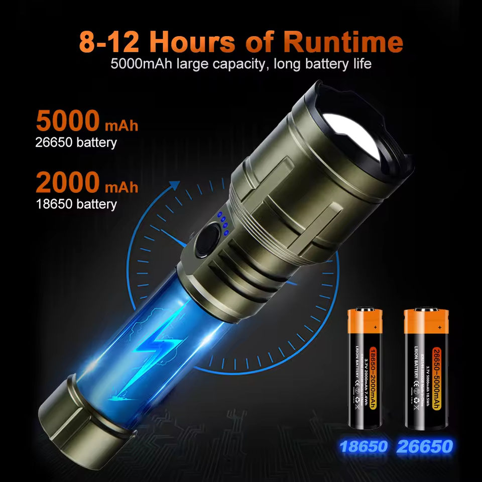 Linterna Táctica 2026 de Alta Intensidad, Largo Alcance, Zoom Ajustable, Recargable, Portátil, de Aleación de Aluminio Solar, con 1 Año de Garantía