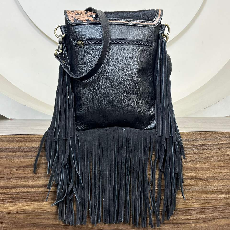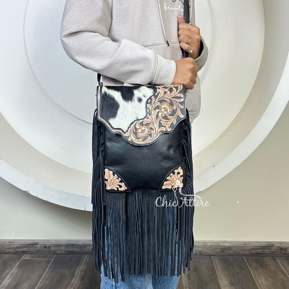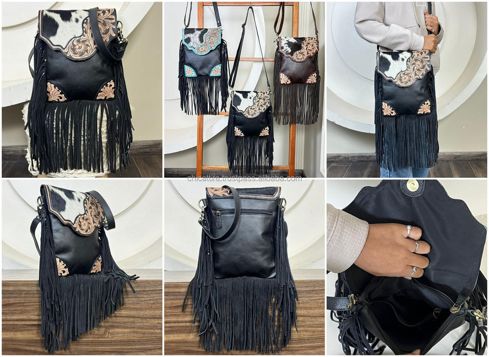 Nombre del producto:Bolso bandolera de cuero repujado con flecos