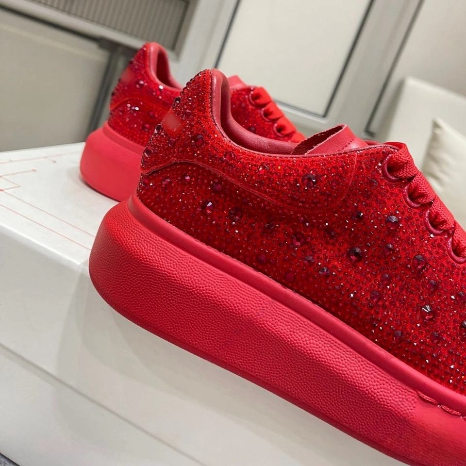Zapatillas Deportivas de Plataforma con Pedrería Roja Premium 2026, Zapatos Casuales con Cordones y Adornos de Cristal Brillante