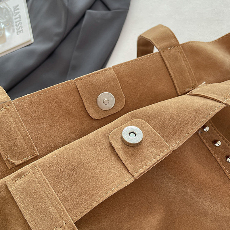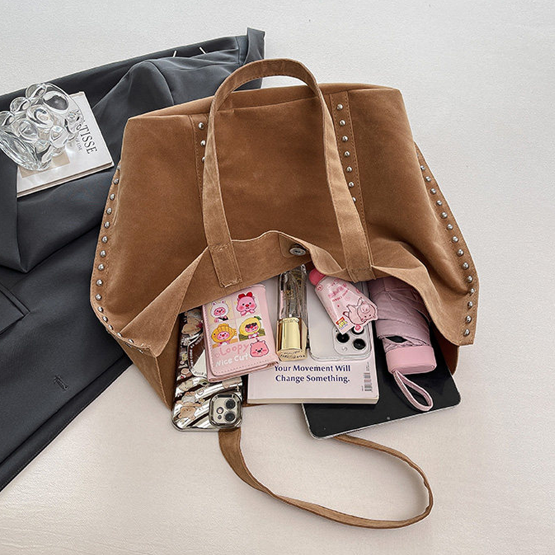 Bolso de mano decorativo con remaches, novedad 2026, bolso de compras marrón de alta calidad, bolso tote de gran capacidad