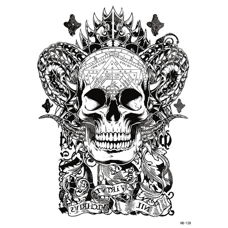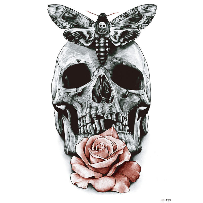 Nuevo Tatuaje Temporal de Calavera 2026, Diseño en Papel Negro Impermeable para Hombres y Mujeres, para Brazo y Cuello, Arte Corporal para Adultos