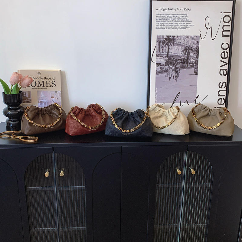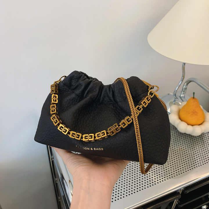 Bolso de Hombro con Cadena, Estilo Coreano, Plisado, Texturizado, Tipo Nube, Simple, Moderno, Casual, de Poliéster, Primavera 2026