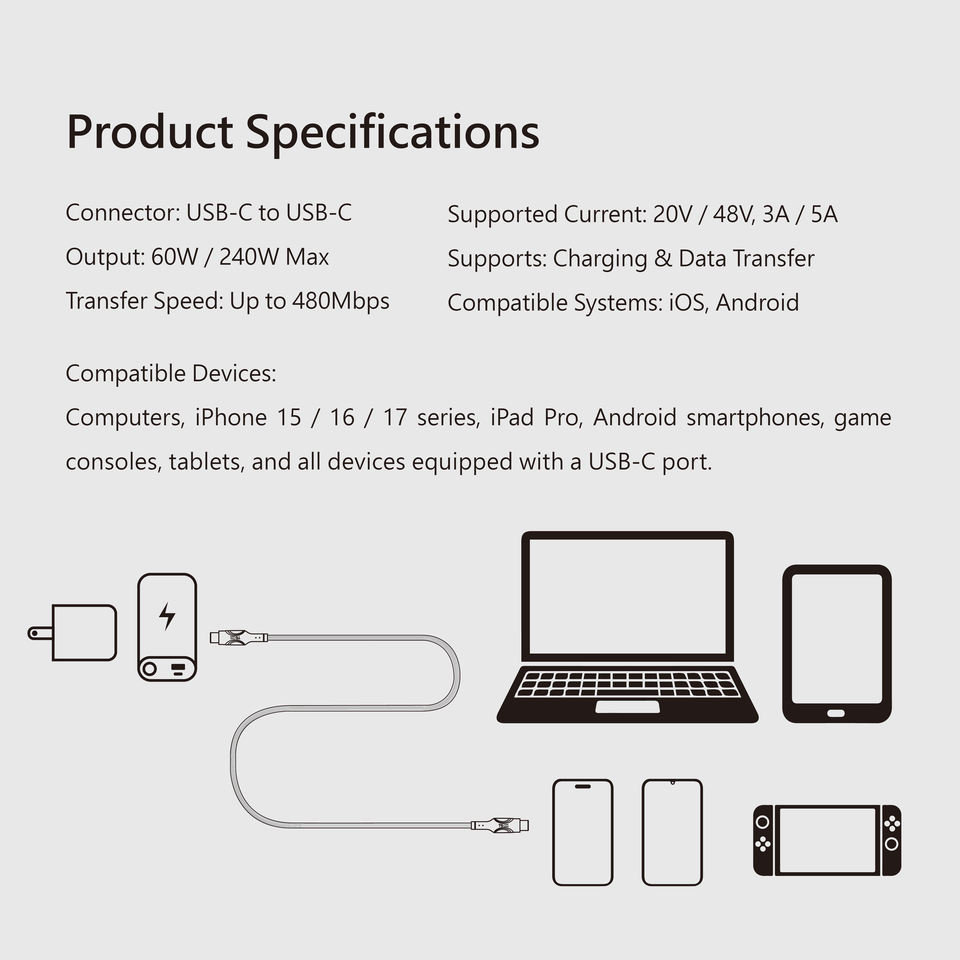 Cable de Carga Rápida Tipo-C de 60W, Estilo 2026, Durable, con Trenzado de Cobre Puro y Revestimiento de PVC, 1M, para Android, iOS, Computadoras, Teléfonos Móviles y Automóviles