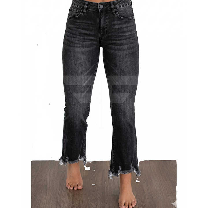 Pantalones vaqueros de mujer estilo nuevo 2026, con efecto desgastado, ligeramente acampanados, de 9 pulgadas, que realzan la cadera, de pierna ancha, adelgazantes y con bordes deshilachados.