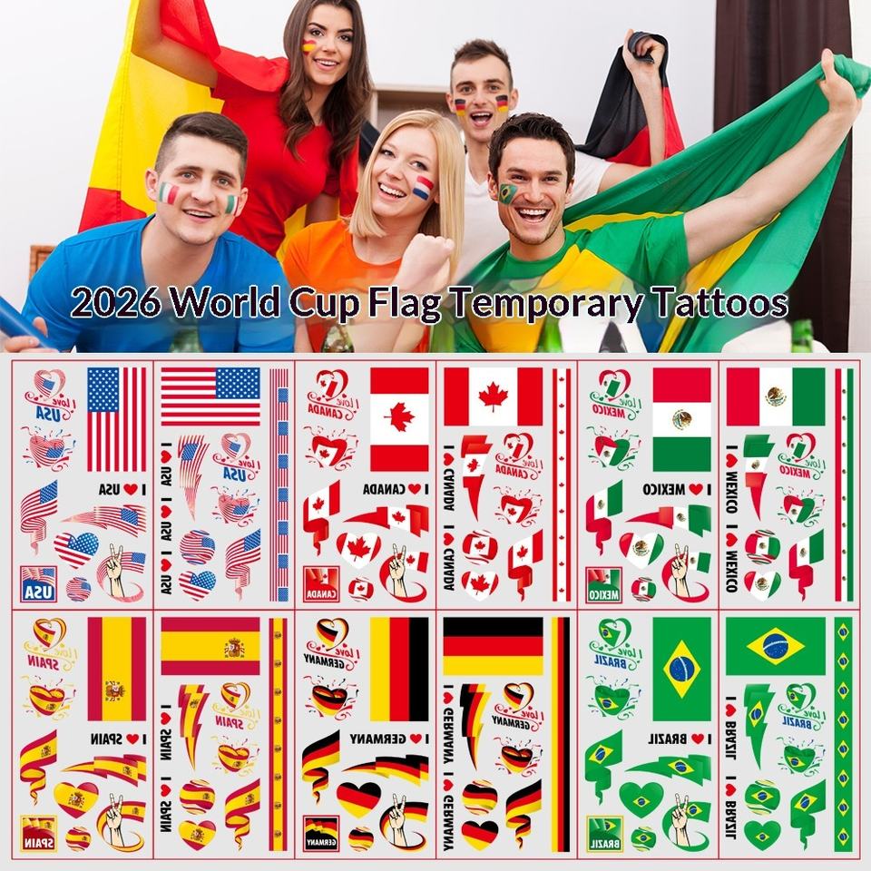Nuevo 2026: Pegatina Temporal de Transferencia por Agua con Diseño de Bandera de EE. UU., Canadá y México para Aficionados a Deportes, Fiestas y Partidos de Fútbol