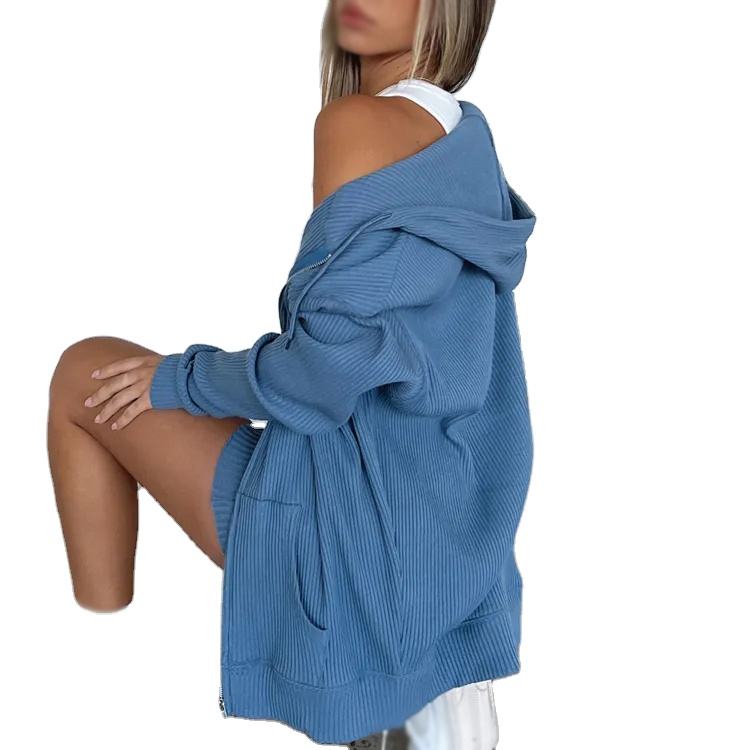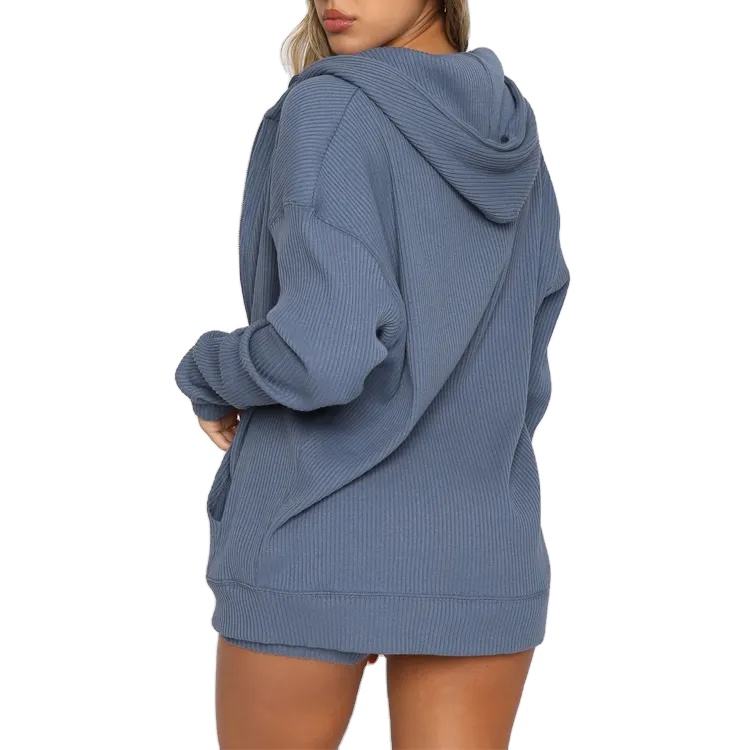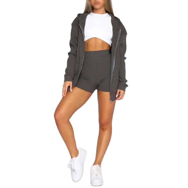 Conjuntos Deportivos de 2 Piezas para Mujer, Sudadera con Capucha y Cremallera, Estilo Informal, Holgado, con Cinta, Logotipo Personalizado OEM 2026, Venta al Por Mayor