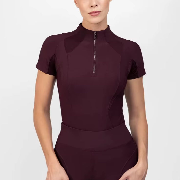 Camiseta de Equitación para Mujer 2026, Ligera, Transpirable, de Tela Elástica, Manga Corta, Capa Base, Servicio OEM