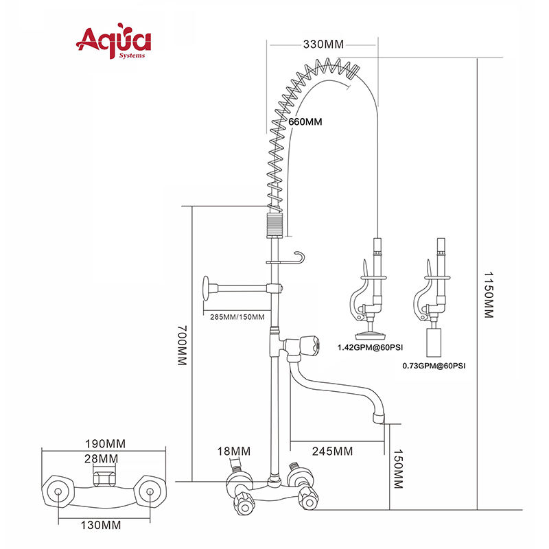 Grifo mezclador de cocina comercial con rociador de prelavado 2026