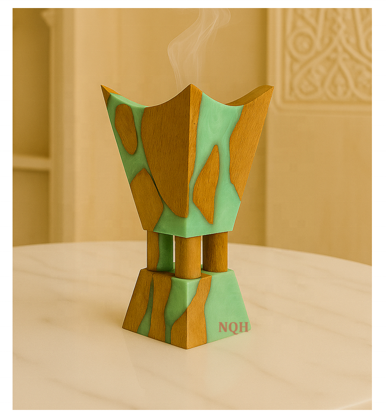 Quemador de Incienso de Madera de Acacia Premium con Resina Epoxi 2026 | Difusor de Incienso de Aromaterapia Hecho a Mano | Mubkhar de Lujo con Incrustaciones de Resina