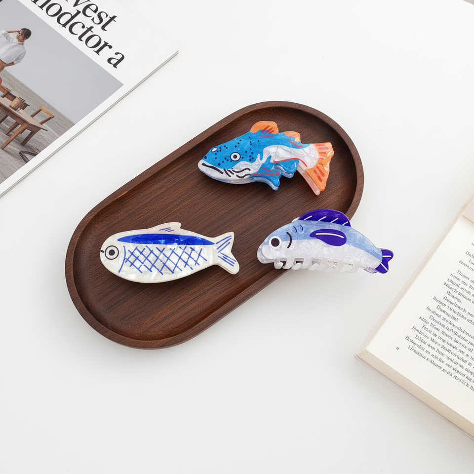 Pinza para el pelo con diseño de animales marinos tropicales (peces y tiburones) estilo dulce, para la parte trasera de la cabeza, accesorios para el cabello, 2026 RTS