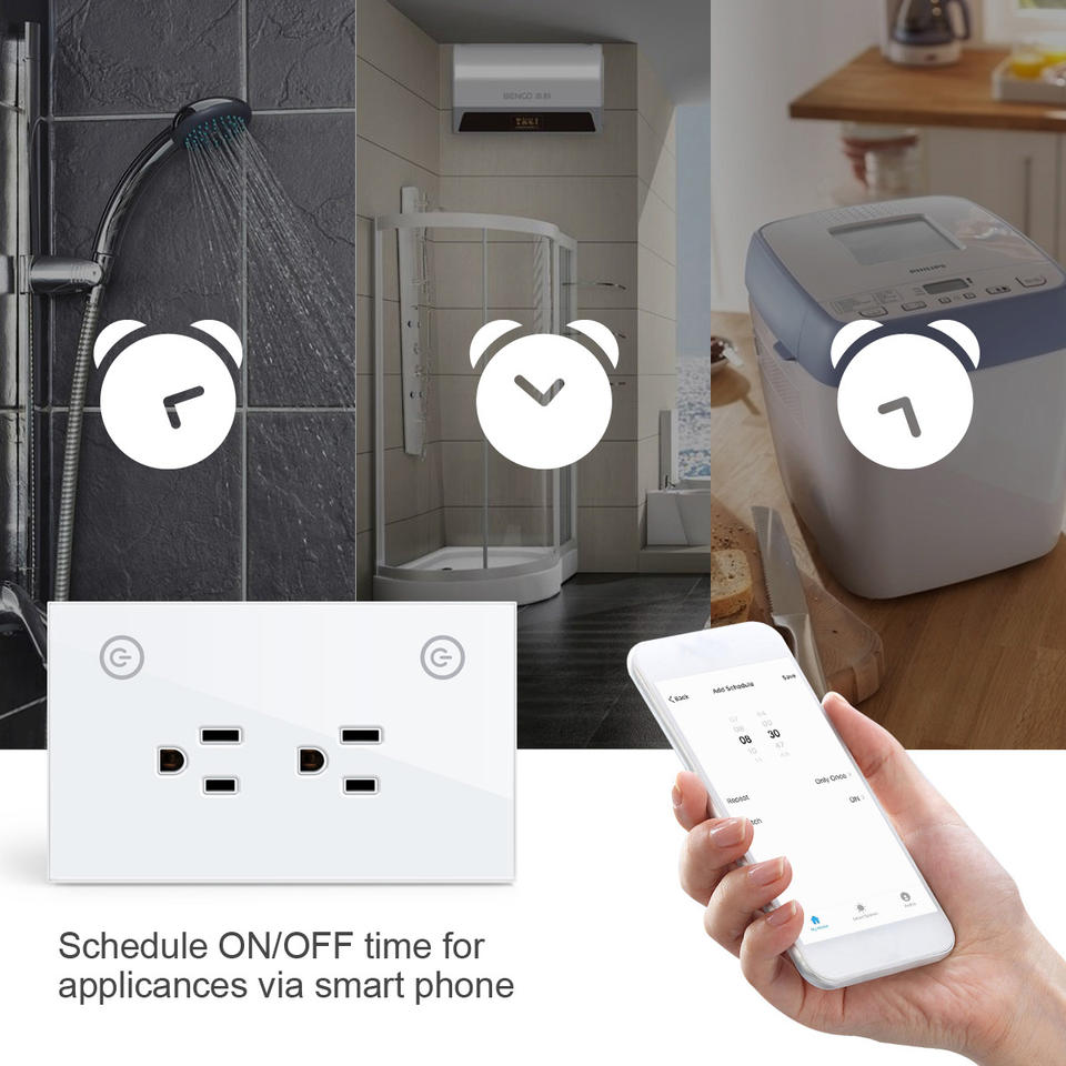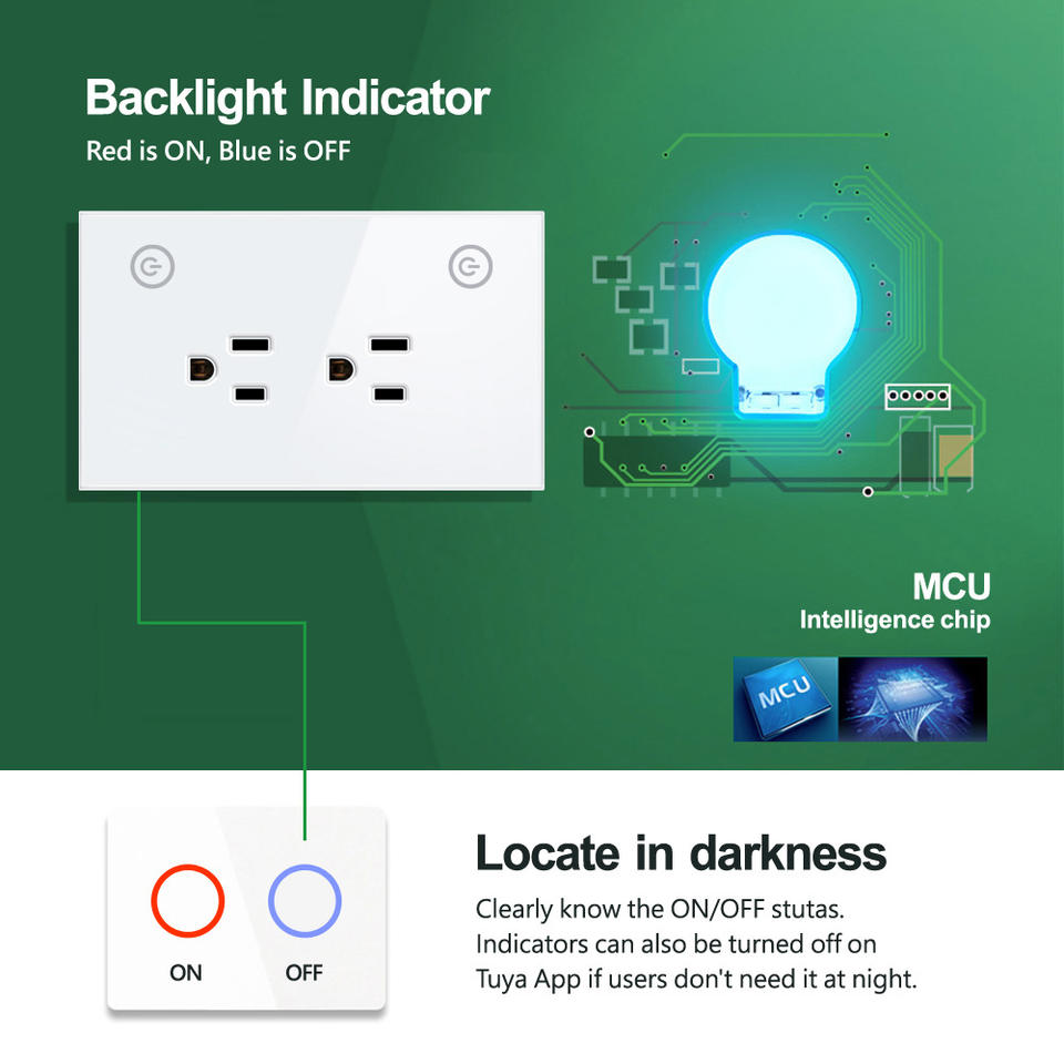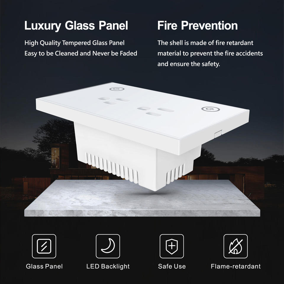 Enchufe de Pared Inteligente WiFi de 2 Canales con Panel de Vidrio de Rendimiento Confiable 2026, Versión Exclusiva para EE. UU., con Asistencia por Voz Tuya PST-SM-PW801