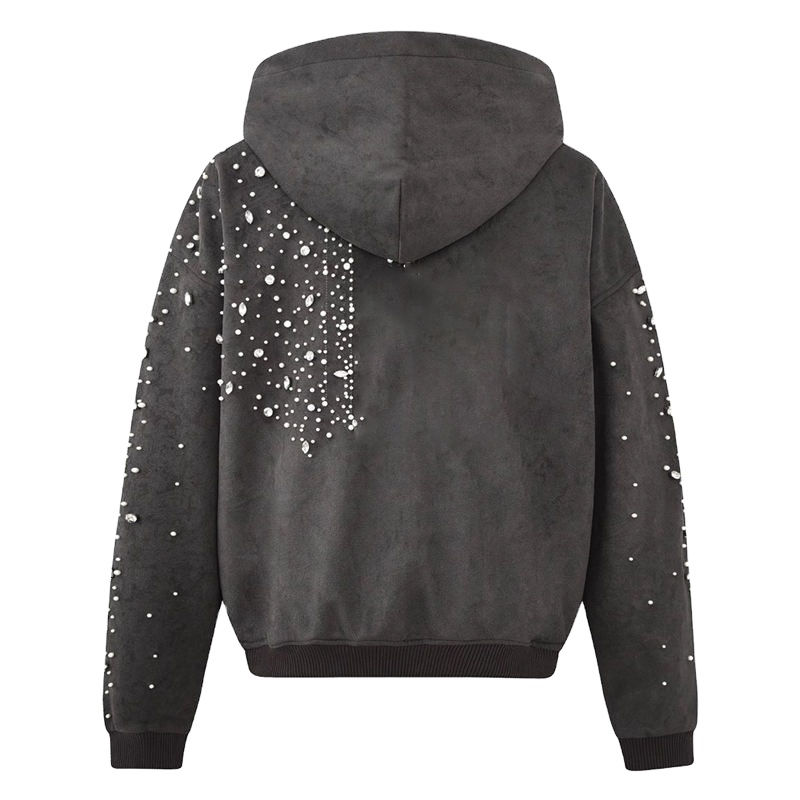Sudadera con Cremallera y Detalles de Pedrería 2026, Diseño Brillante y Atractivo, Corte Regular, Cómoda y Moderna, 100% Algodón, Invierno