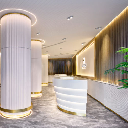 Mostradores de recepción Led de superficie sólida 2026, Color blanco para Game Center Arena
