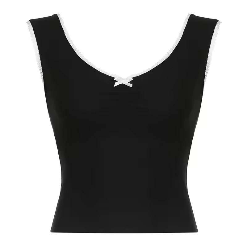 Top Básico Elástico con Volantes y Cuello en V para Mujer, con Lazo y Encaje Dulce, Colección Primavera 2026