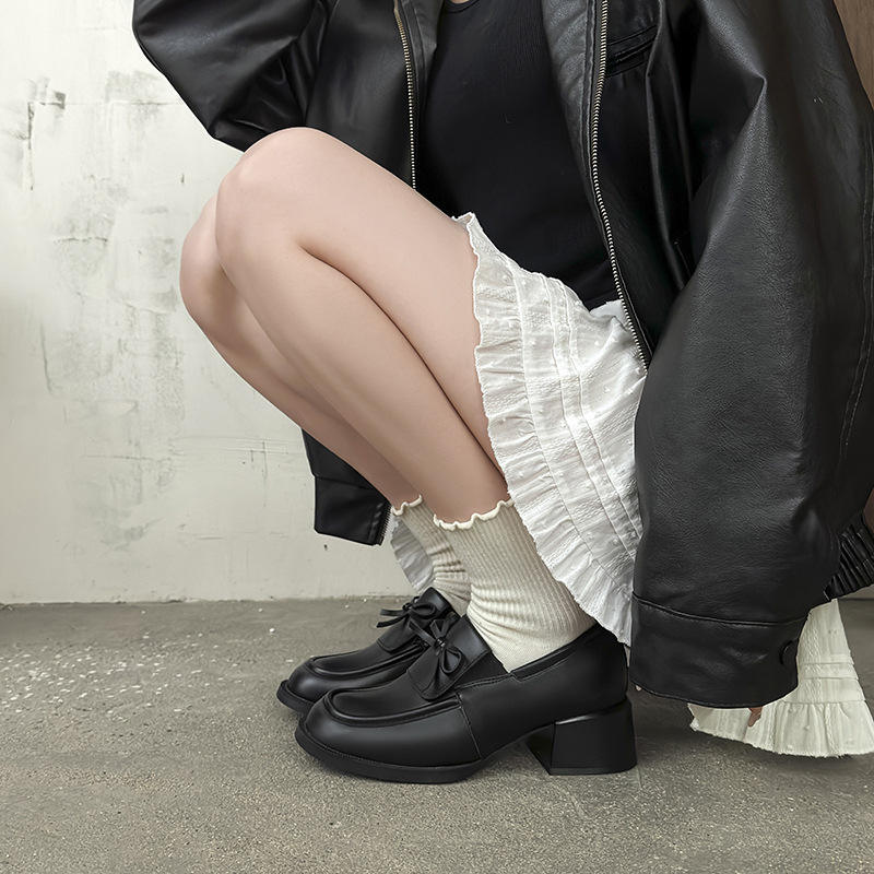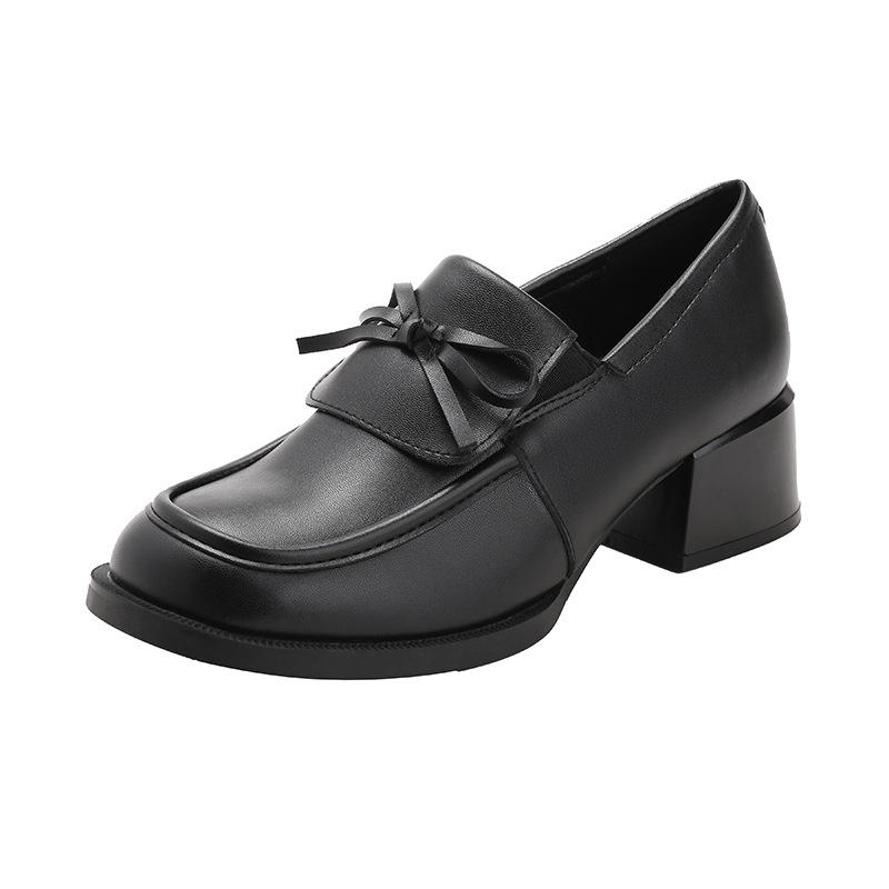 Zapatos de cuero retro británicos de nueva colección primavera 2026, estilo casual francés con empeine profundo, negros, con aumento de altura para mujer
