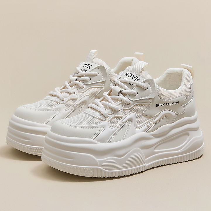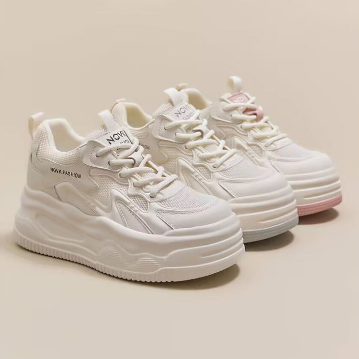 Zapatillas Blancas con Plataforma y Punta Redonda para Mujer, Novedad Primavera 2026, Estilo Sofisticado, para Aumentar la Estatura
