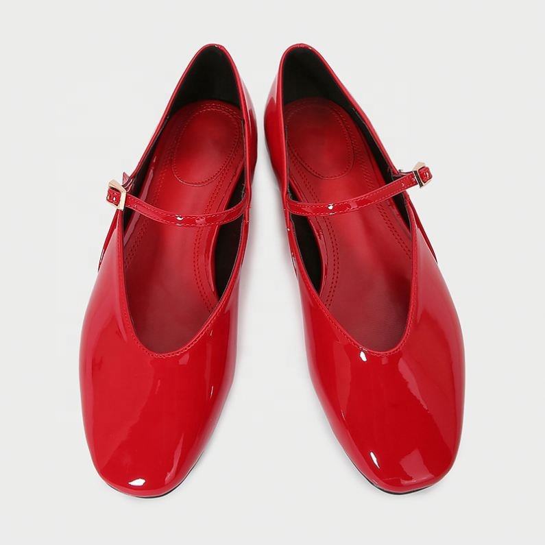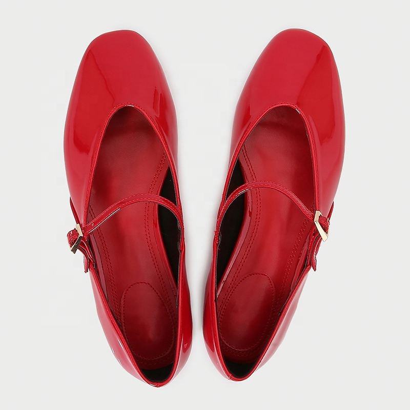Zapatos de Mujer con Hebilla y Correa, Tacón Plano, Estilo Mary Jane, Color Rojo, Primavera 2026