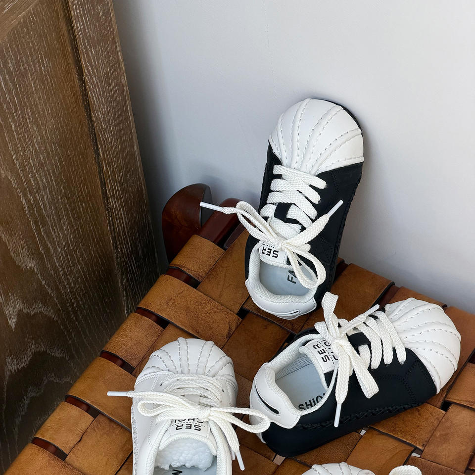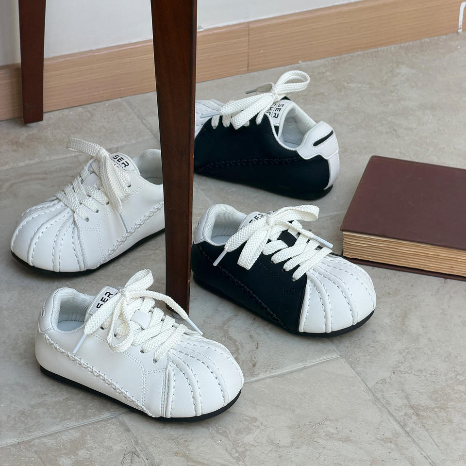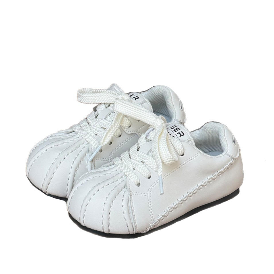 Botas de tobillo blancas retro con puntera de concha para niños y niñas, estilo primavera 2026, diseño feo-adorable, casuales, con suela de goma para skate.