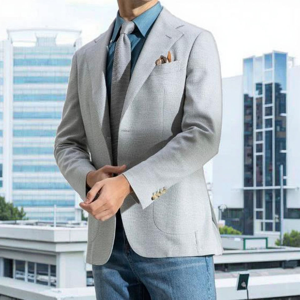 Traje de Negocios de Primavera/Verano 2026, Chaqueta Gris Claro con Solapa de Ojal Hecha a Mano, Bolsillos con Parches, Talla Grande, 100% Lana