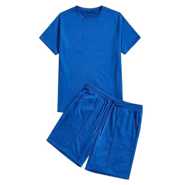 Conjunto de Camiseta Casual de Punto Transpirable para Hombre, Talla Grande, Colección Verano 2026, Azul Sólido, Algodón y Poliéster, 2 Piezas