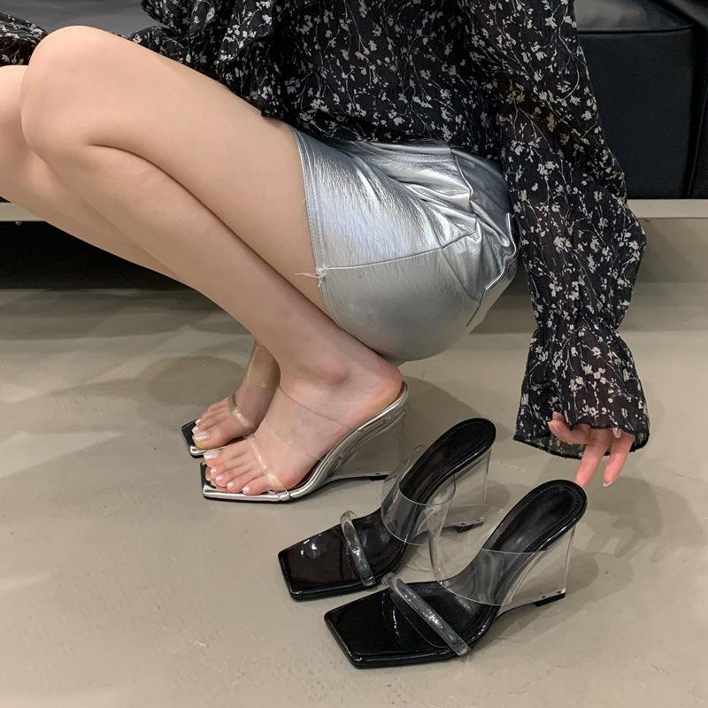 Sandalias y Chanclas de Verano 2026, Nuevas, Simples, Versátiles, con Tacón de Cuña, Tacón Alto, Punta Cuadrada, Tacón de Bloque, PVC Transparente, Deslizables