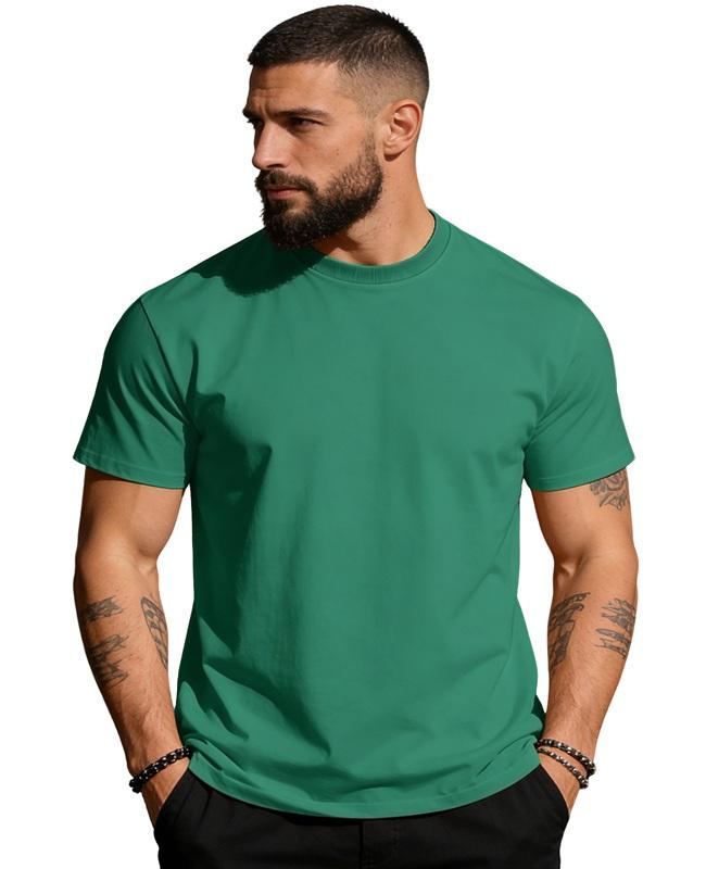 Camiseta de Manga Corta para Hombre, Verano 2026, Nueva, Color Sólido, Cuello Redondo, 100% Algodón, 200 g/m², Tejido de Punto, Informal, Deportiva