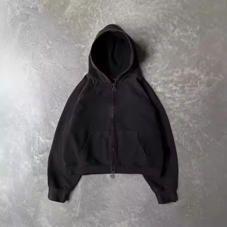 Sudadera con Capucha Corta y Holgada con Estampado de Verano 2026, Sudadera Extra Grande con Capucha Corta, Hombros Caídos, Cierre de Cremallera, Doble Capa para Hombre