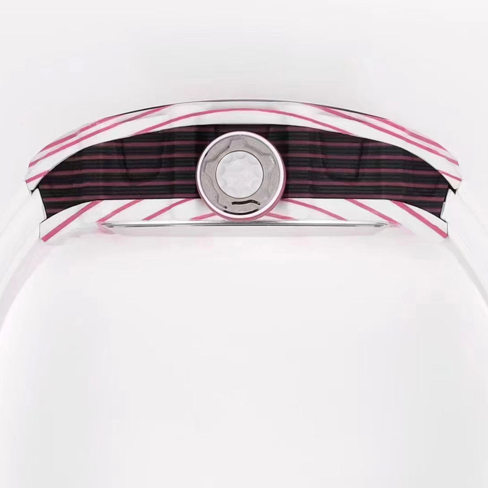 Reloj Mecánico de Esqueleto Rm Personalizado de Alta Gama 2026, Reloj de Pulsera Deportivo con Caja de Fibra de Carbono en Degradado Blanco y Rosa, Regalo Lujoso para Hombre