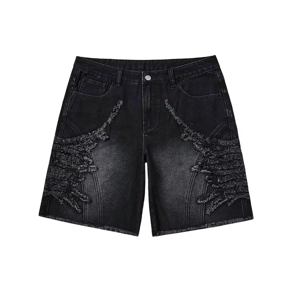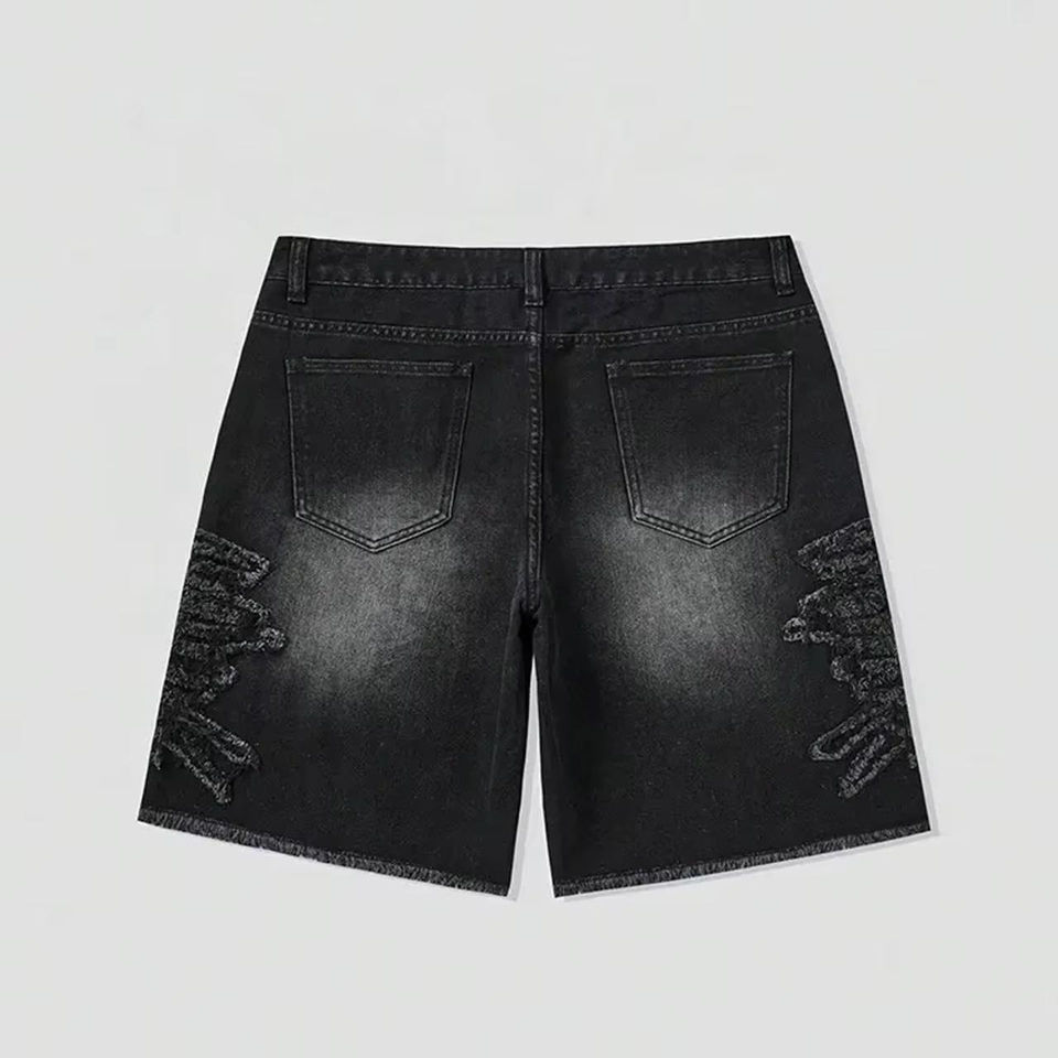 Pantalones Cortos de Mezclilla Baggy para Hombre, Estilo Streetwear, con Apliques de Pedrería y Bordados Personalizados, Lavado Ácido, Tendencia 2026