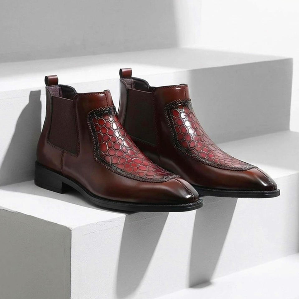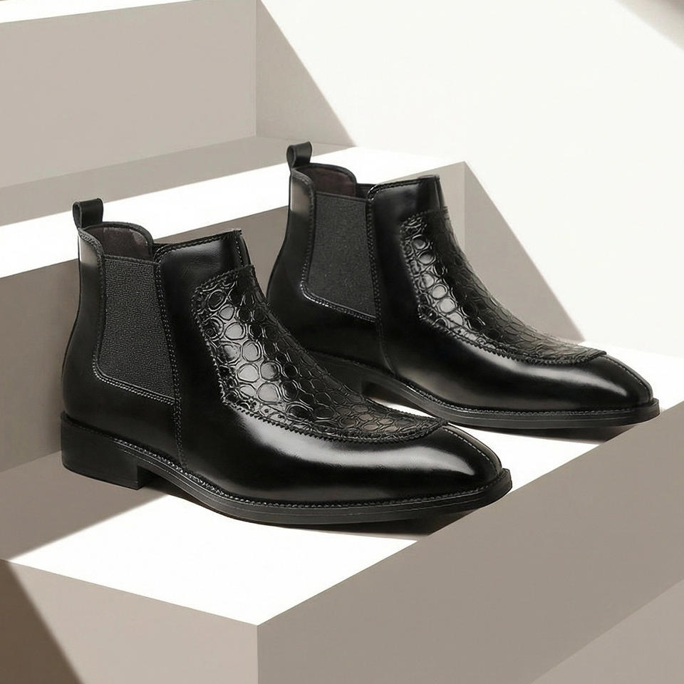 Botas de Cuero para Hombre con Punta en Pico, Estilo Retro, Tendencia 2026, Botas Casuales de Negocios Británicas Sin Cordones