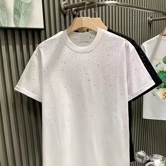 Camisetas Unisex 2026 con Pedrería, Algodón de Alta Calidad, Transpirables, Brillantes, con Gráficos, Manga Corta, Tallas Grandes, para Hombre y Mujer, OEM