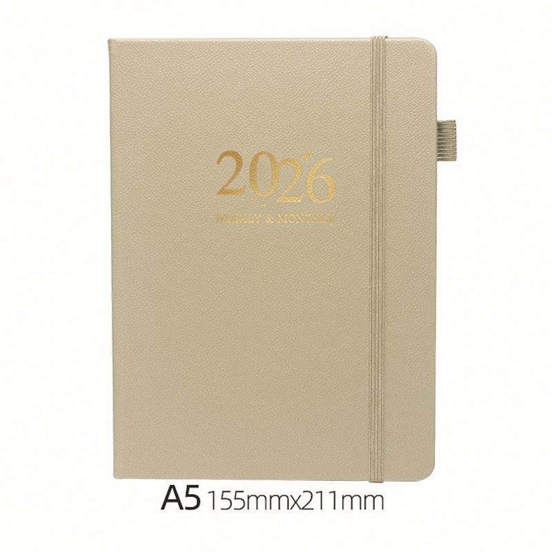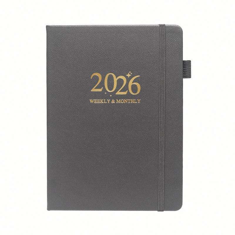 Agenda Semanal 2026, Nuevo Planificador con Correa, Calendario de Cuero Estampado, Tamaño A5, Encuadernación Cosida con Hilo, Diseño Elegante