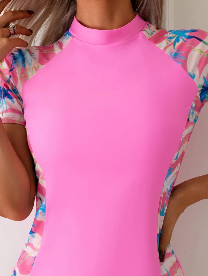 Traje de Baño de Dos Piezas para Mujer 2026, Manga Corta, Elástico, para Surf, Playa y Natación