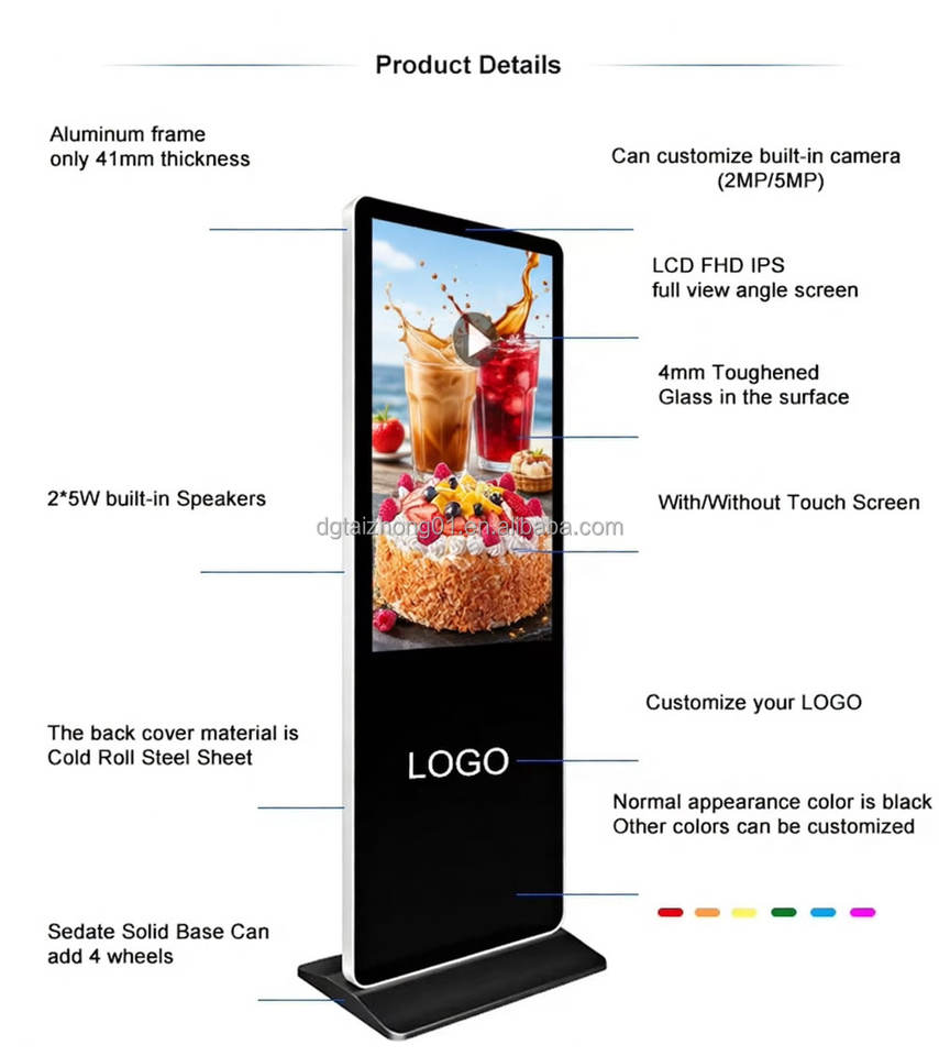 Nuevo Panel Publicitario Portátil de 65 Pulgadas con Pantalla Táctil Infrarroja y Ruedas para Exhibición de Medios, Gran Venta 2026
