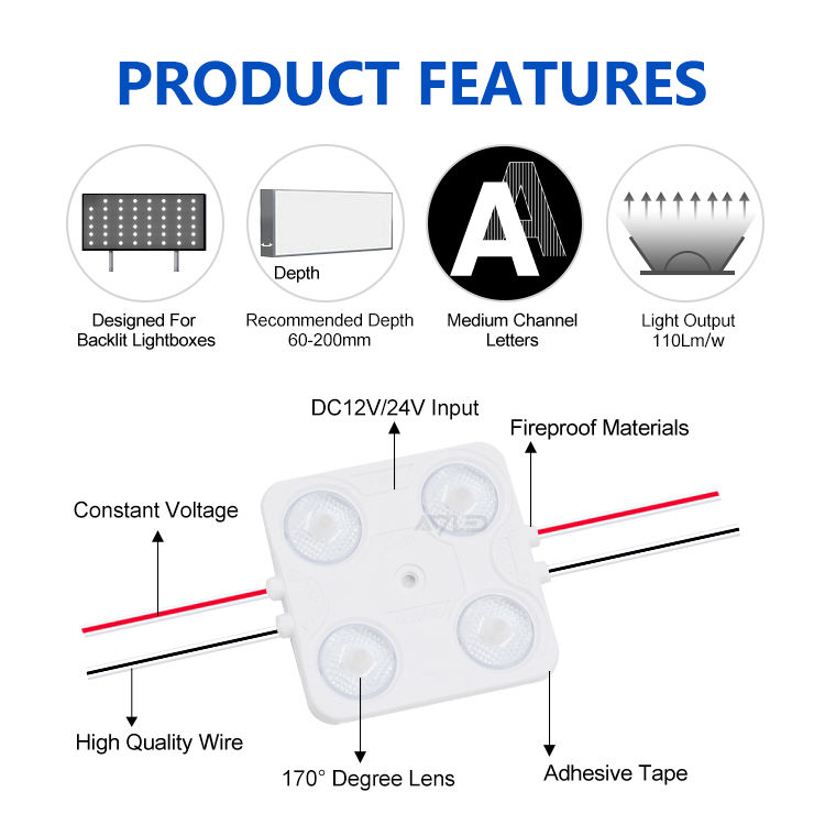 Módulo LED de Retroiluminación de 170 Grados, 2835, 150lm/w, Inyección, Impermeable IP67, 12V CC, 2W, 4 Chips, para Letras de Canal, Venta al Por Mayor 2026