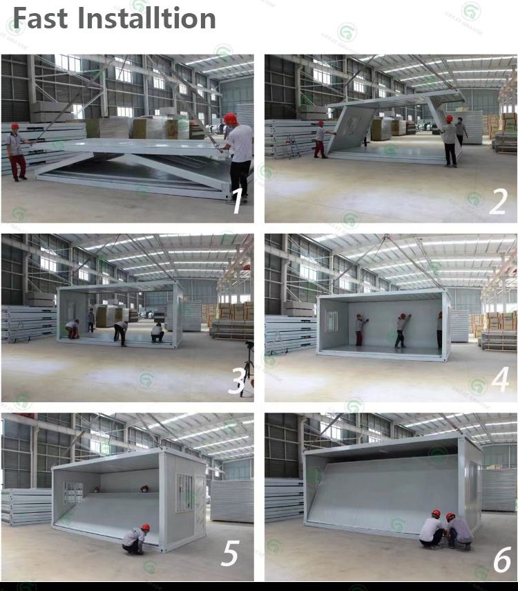 Contenedor Plegable de 20 Pies, Pared de Cortina de Vidrio, Casa Contenedor Modular Prefabricada, Oficina, Hogar, Hotel, Cafetería, Estudio, Villa, Edificio