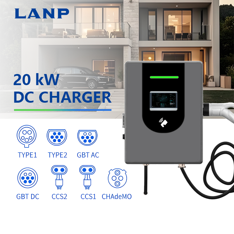 Estación de Carga para Vehículos Eléctricos de 20KW, Montada en Pared, 80A, Carga Rápida DC, GBT, CCS, CHAdeMO, IP54, Resistente al Agua para Exteriores