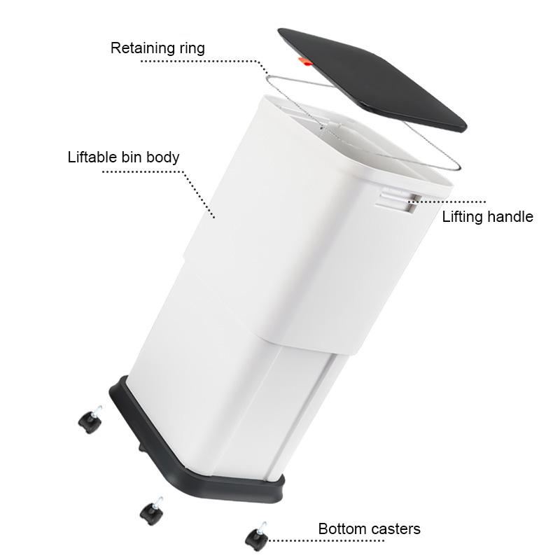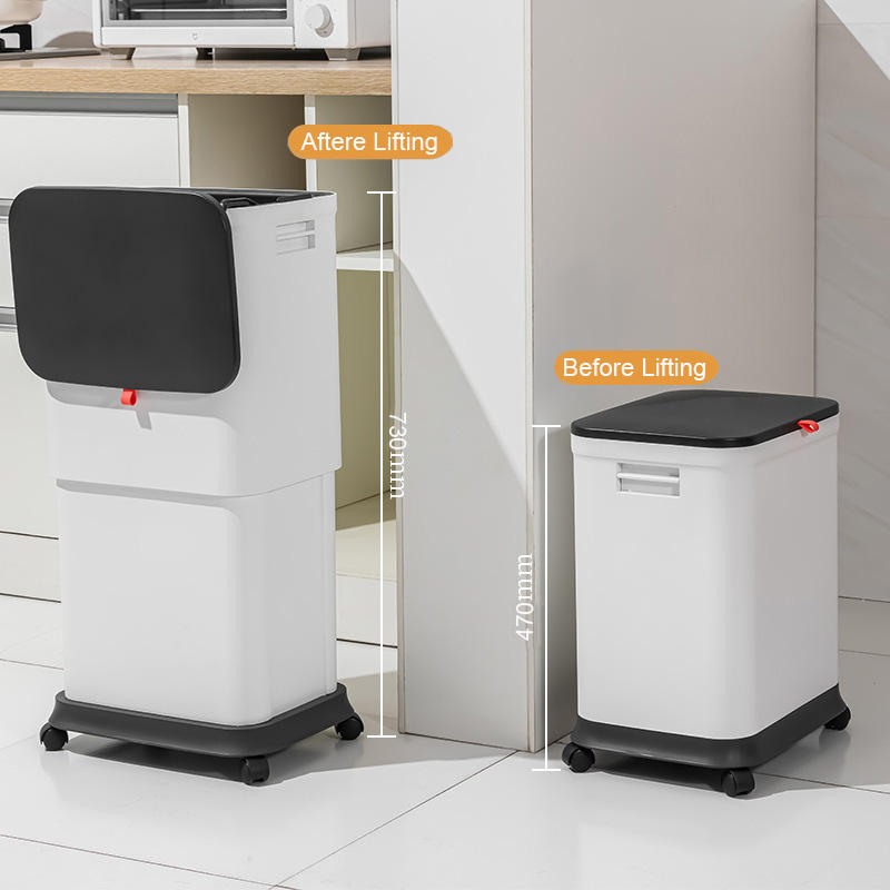 Cubo de Basura de Cocina de Plástico Ecológico de 20L, Ajustable y Extensible, Blanco/Gris Oscuro