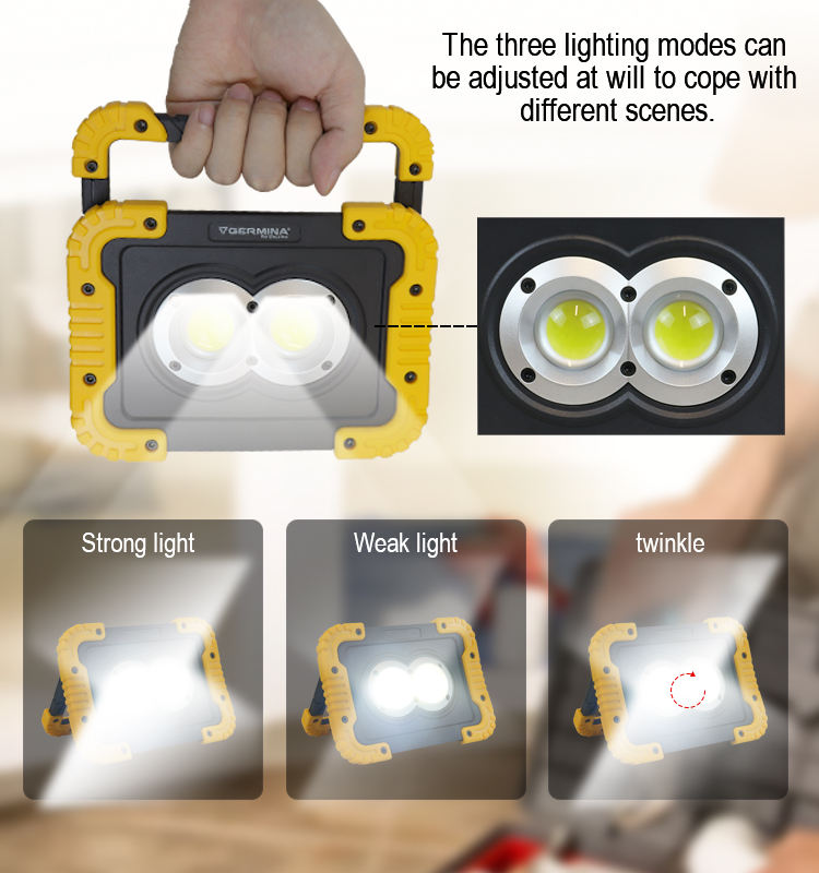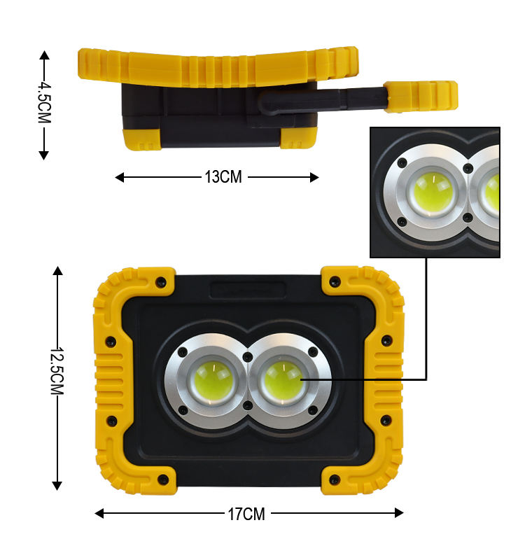 Lámpara de Trabajo LED Portátil Recargable de 20W, Resistente al Agua IP44, COB de Alta Calidad, Regulable, Ángulo de Haz de 120°, 2 Años de Garantía