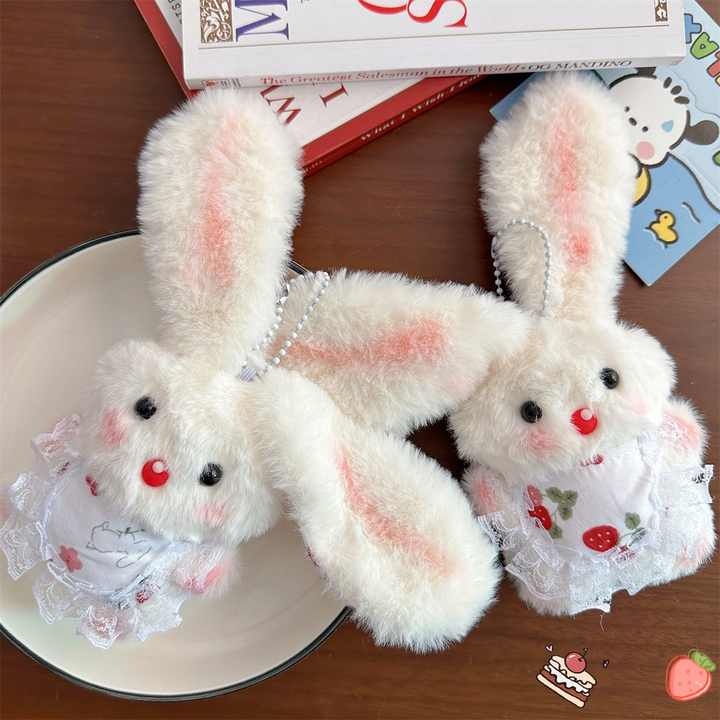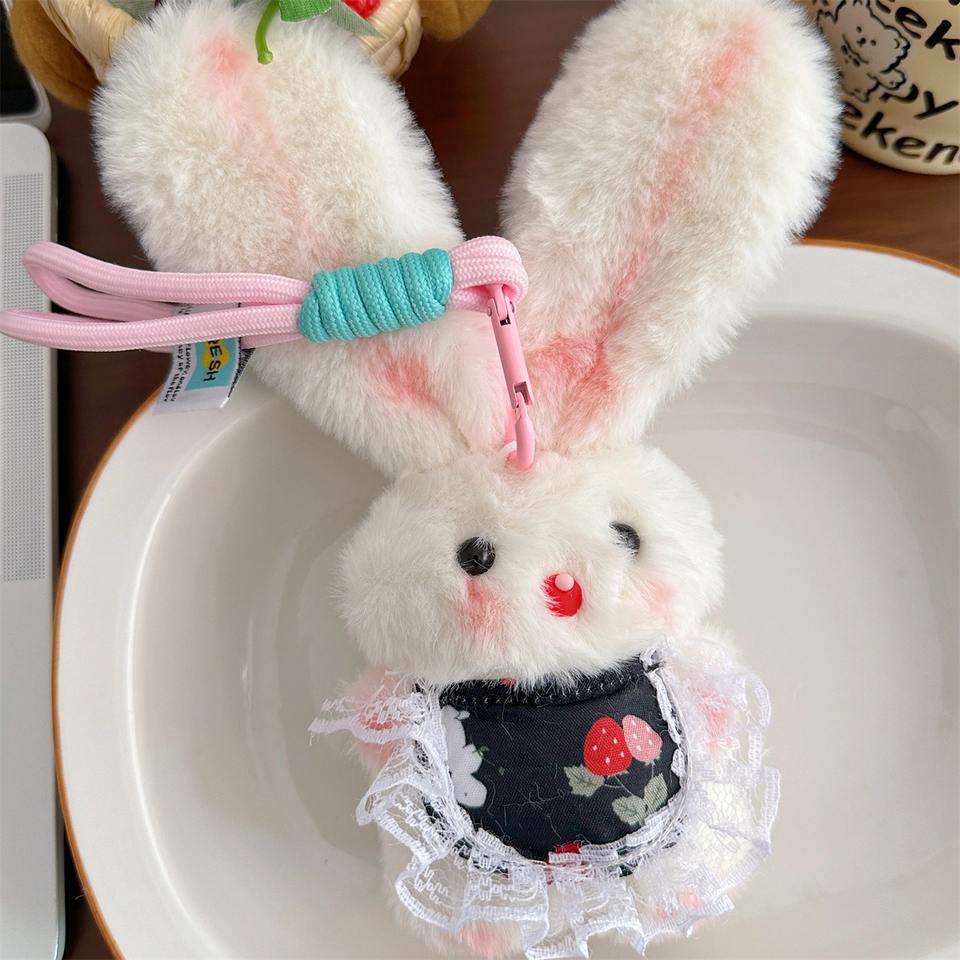 Muñeco de Peluche de Conejo de Orejas Largas Hecho a Mano de 20 cm con Colgante de Llavero, Bolsa de Peluche para Niñas, Juguete de Peluche
