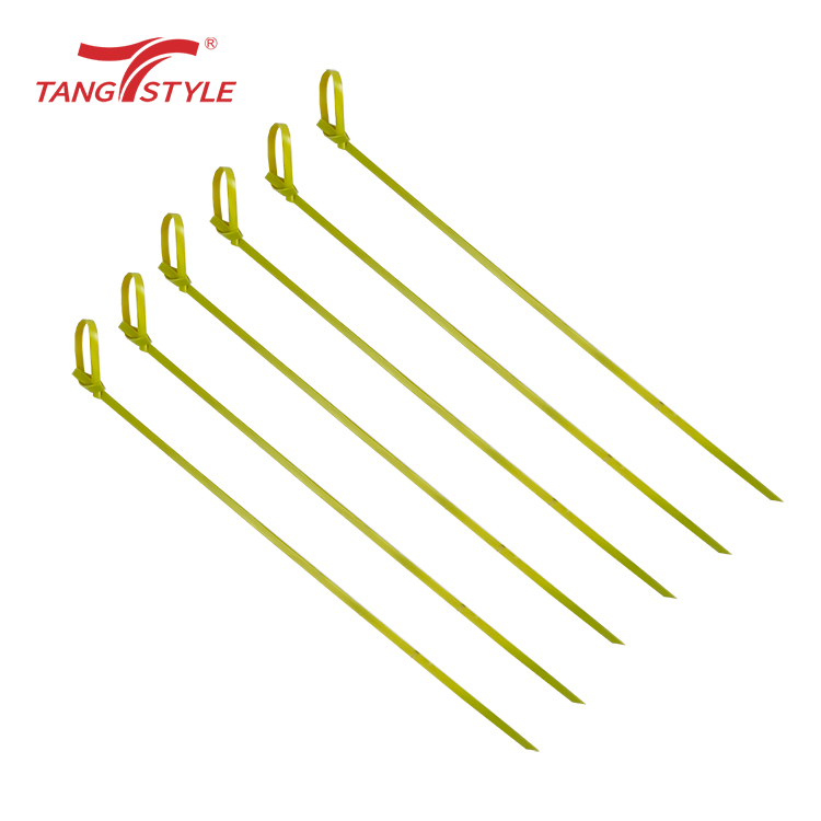 Palo de bambú con mango largo de 20cm, pincho de nudo de bambú para cocinar con forma plana, herramienta de cocina para exteriores para barbacoa y Camping
